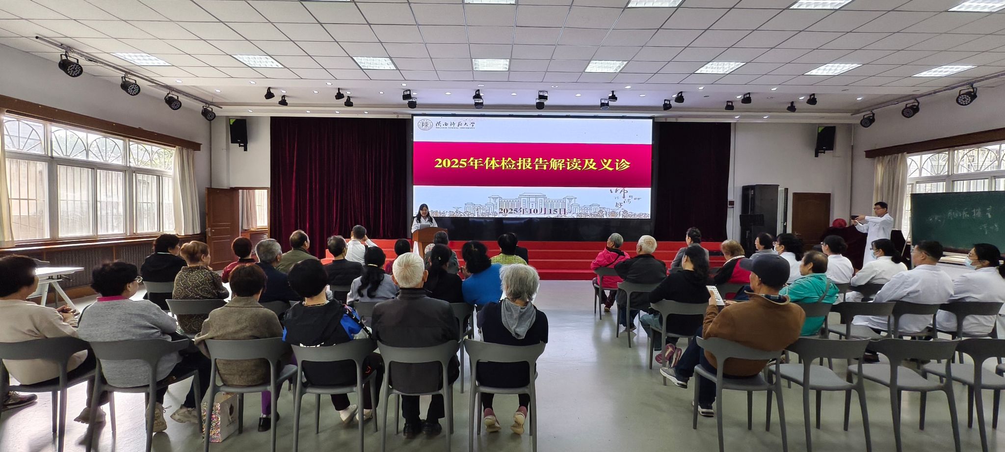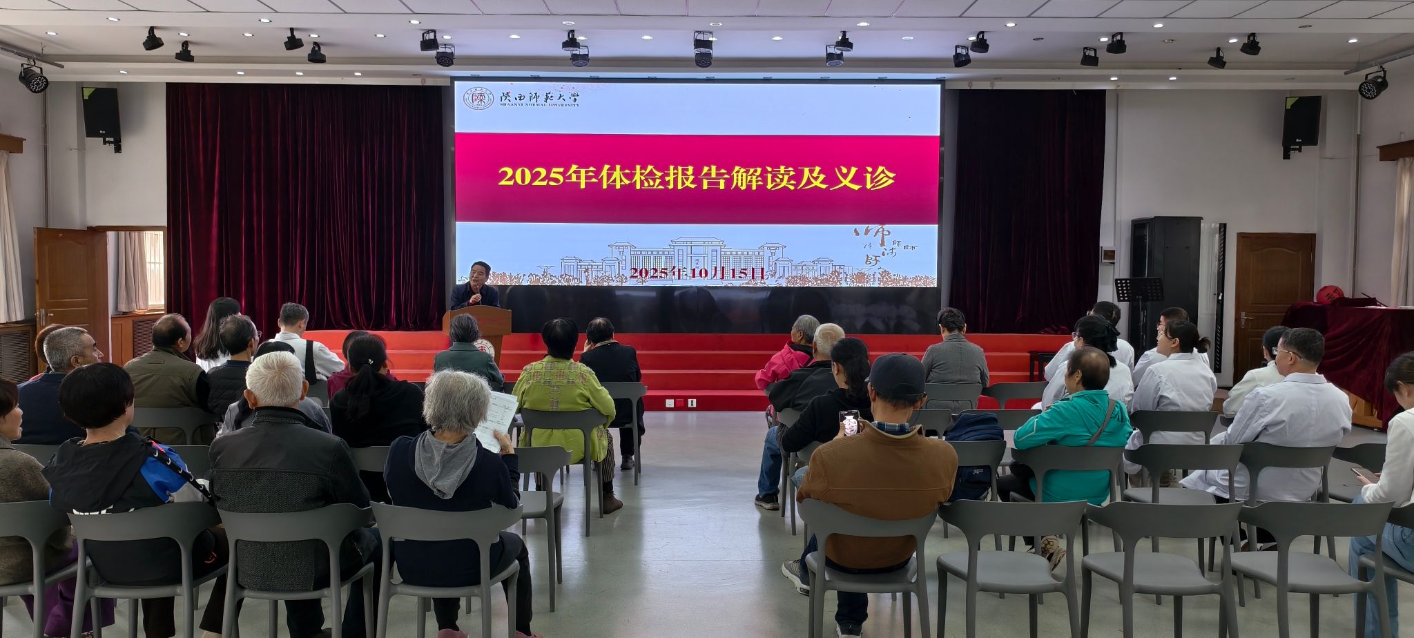 校医院副院长刘迎利对2025年离退休人员体检的总体情况进行了通报。她分析了本次体检中男性、女性检出率最高的十种老年人高发疾病,强调定期体检的重要性,号召老同志积极参加体检,做到早发现早干预早治疗。西安交通大学第一附属医院心脏内科主任医师谢小鲁教授,针对体检检出的老年人普遍超重问题,提出了“减少主食、少食甜食、适量肉食”的饮食建议。