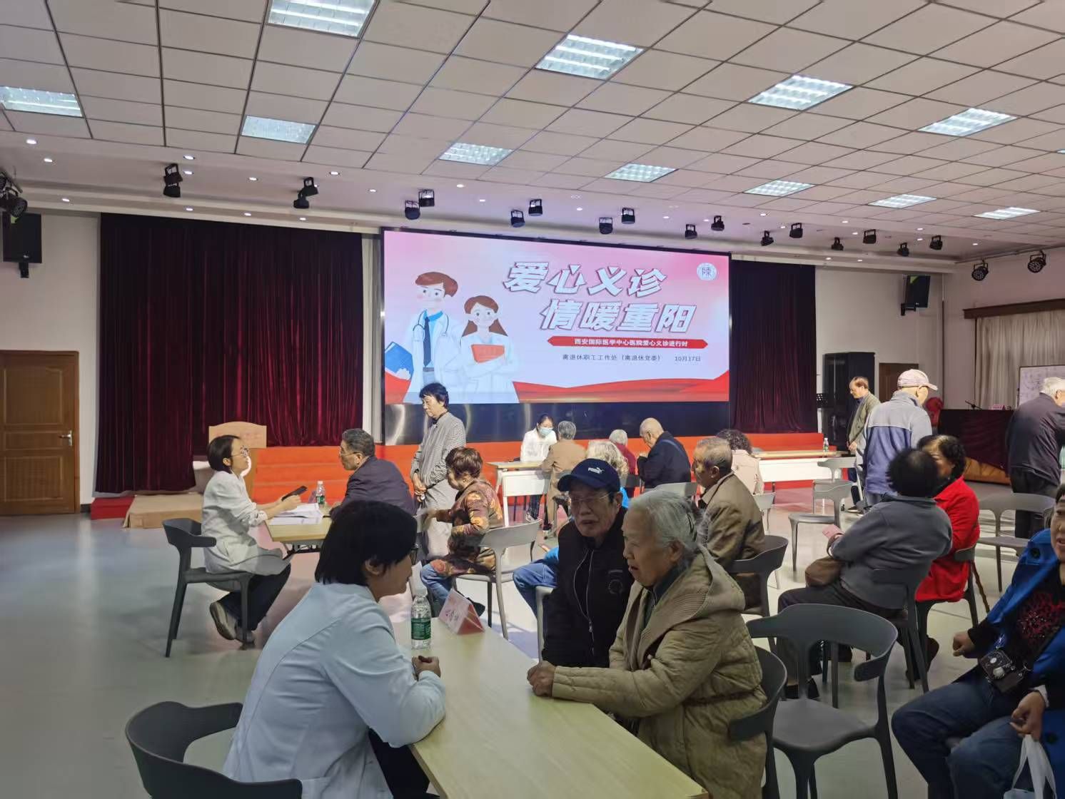 为弘扬敬老爱老传统美德,将健康关怀送到银龄群体身边,10月17日下午,我处联合西安国际医学中心,开展“爱心义诊 情暖重阳”主题义诊活动。该院张丽淑副主任医师带领5人专家团队,走进我校雁塔校区老年活动中心,为百余位退休教师送去专业医疗服务和暖心关怀。